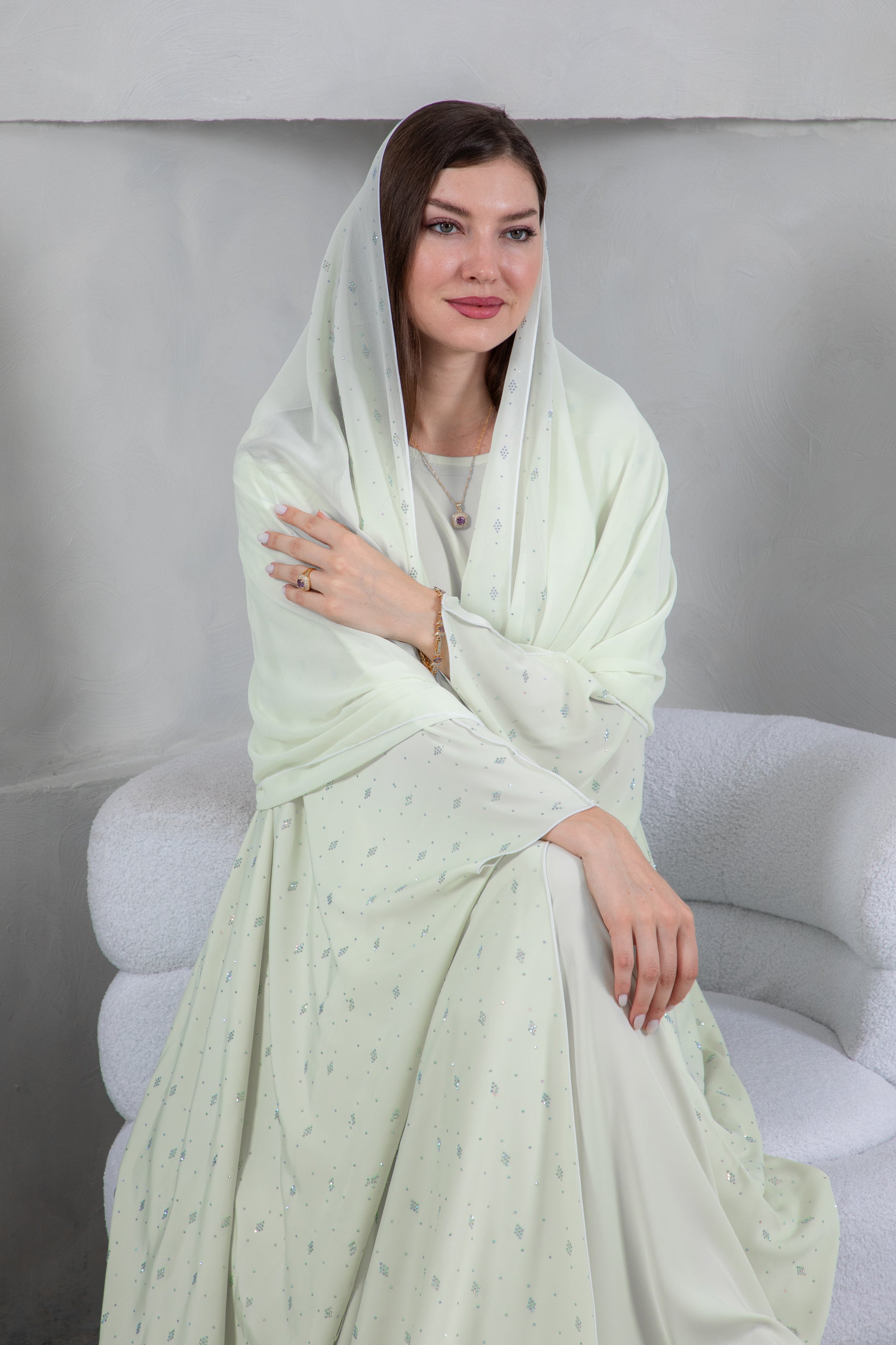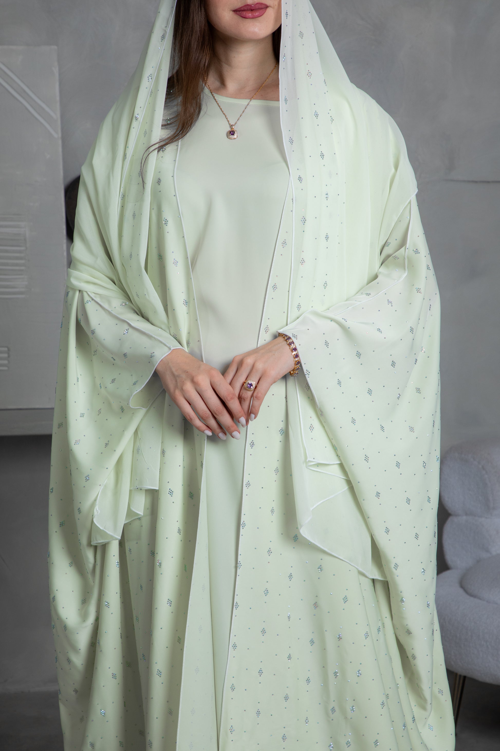 تقدملك عباية فاخرة مع الفستان الداخلي والشال بخامة الحرير الناعمة مع تطريز بالخرز الكوري المتقن Velava Abaya✨🤍